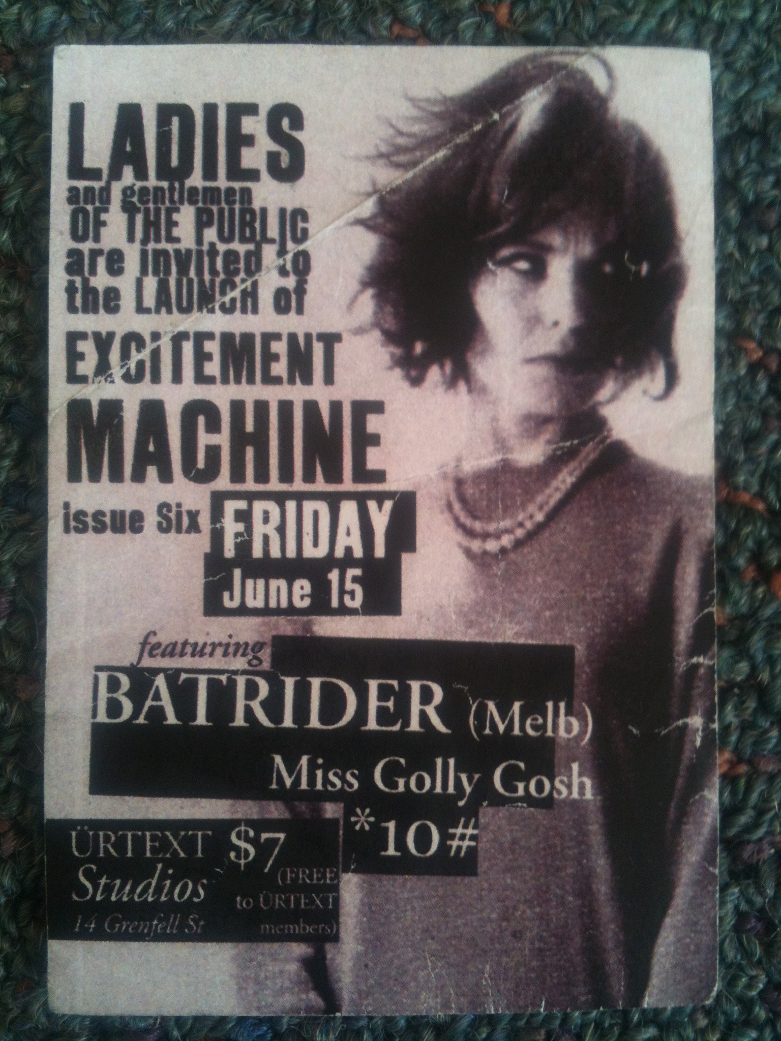 IMG_2271Before Format and the Adelaide Zine Fair, Dr Ianto Ware was plugging zines at shows like this. I reckon this was shortly after the Jade Monkey opened (which is now shut down).