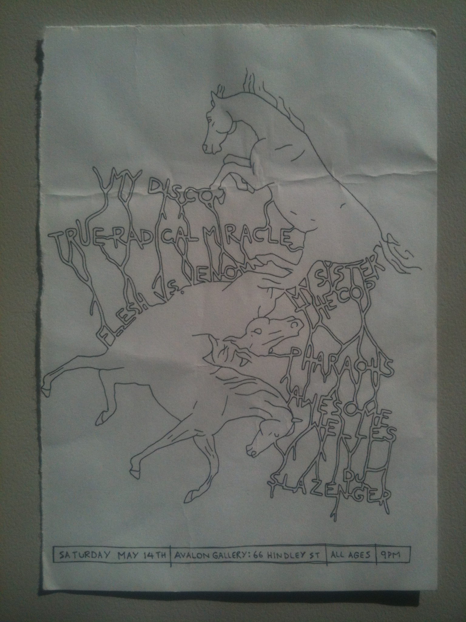 This is an alternative flyer to the gig at Avalon featured in the last post. It was probably designed by the guys from My Sister the Cop, who always had very intricately drawn flyers.