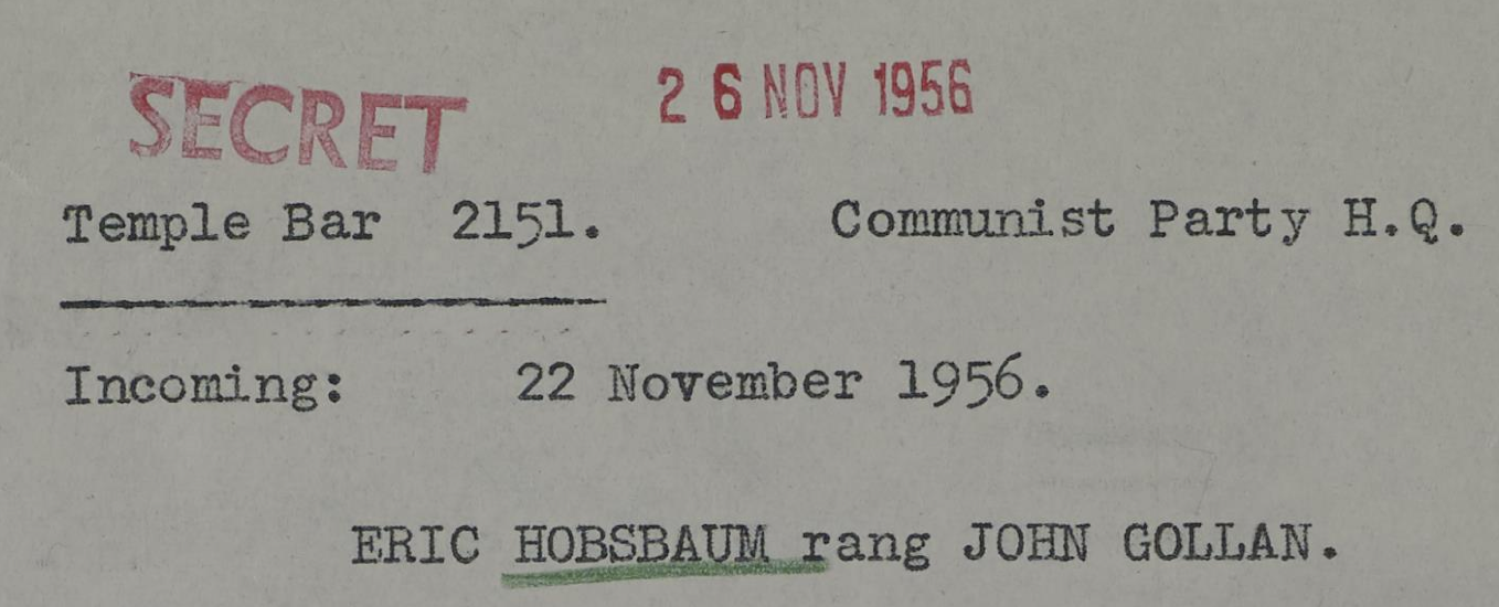 The National Archives have just released a series of MI5 files, including a number of files on British Marxist historians Erich Hobsbawm and Christopher Hill. 8 files on Hobsbawm have been released, with two digitised. The first of these digitised files is particularly interesting because it covers the period 0f 1956, when the Historians’ Group of the Communist Party of Great Britain was involved in dissenting actions towards the Party leadership. One of the Historians’ Group’ actions was the writing of a letter that criticised the Party’s support for the Soviet invasion of Hungary, which was intended for publication in the Daily Worker. It was not published the newspaper and thus the letter was sent to the New Statesman and Tribune, who subsequently published on December 1, 1956. I have blogged about the letter here.