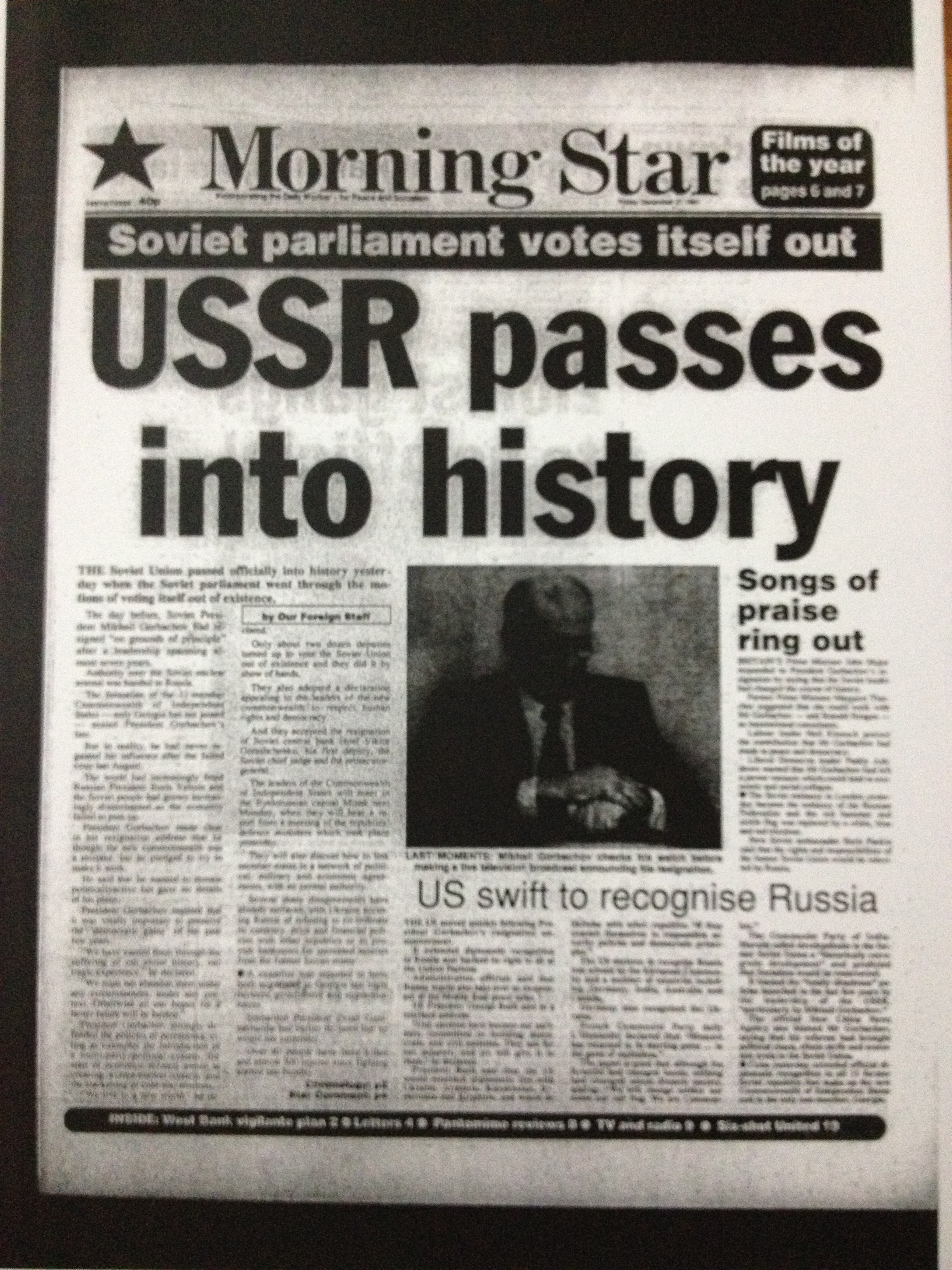 As the Eastern Bloc started to unravel over the next year, the Morning Star (on paper at least) welcomed some of the reforms within Eastern Europe (such as the overthrow of the Ceausescus in Romania), but followed the SED and Soviet line until the end in December 1991. I have written more about the reaction of the British left to 1989 and the collapse of the Soviet Bloc here and about the line taken by the Morning Star at the time, I said: