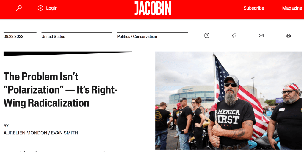 I am very excited to announce that Jacobin published a piece by Aurelien Mondon and myself on the centrist myth of polarisation and the false equivalence of radicalism on the right and left in the liberal mainstream. You can read the piece here.